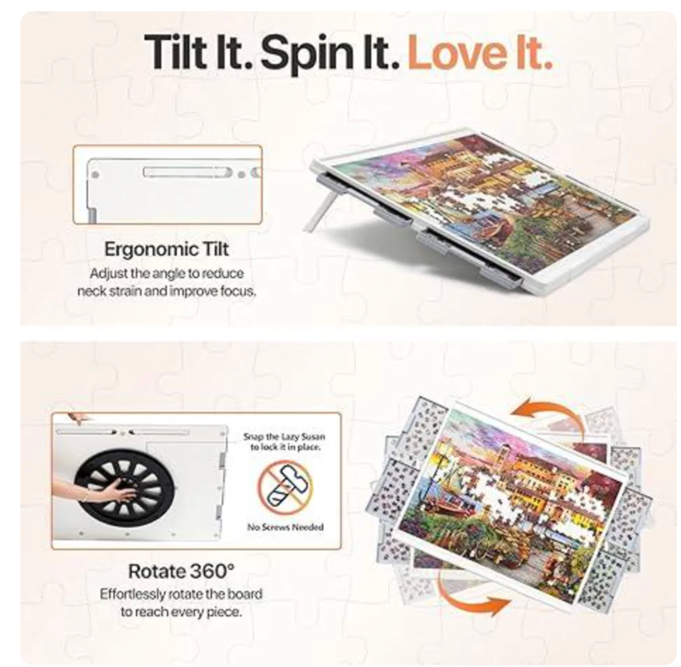 Turn any table into the ultimate puzzle station — built for comfort, organization, and endless satisfaction. Tilt it, rotate it, and solve your masterpiece without neck strain, missing pieces, or frustration.